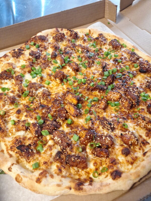 Breaded chicken tossed in General Tso’s sauce with sesame seeds, scallions, and a sweet heat kick.